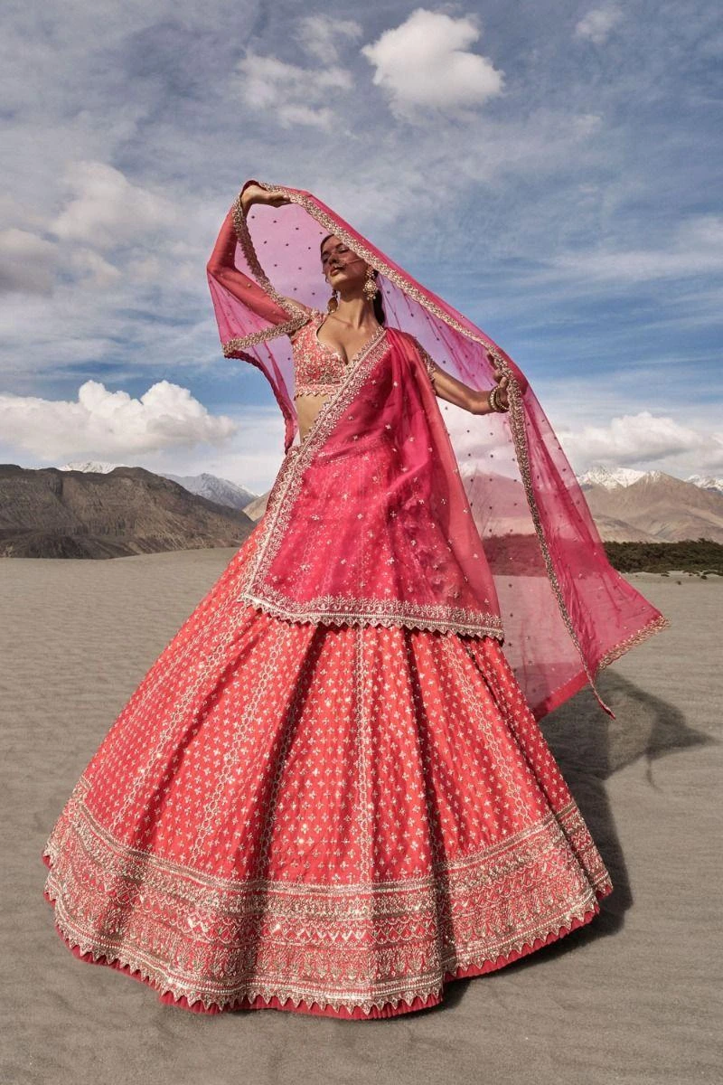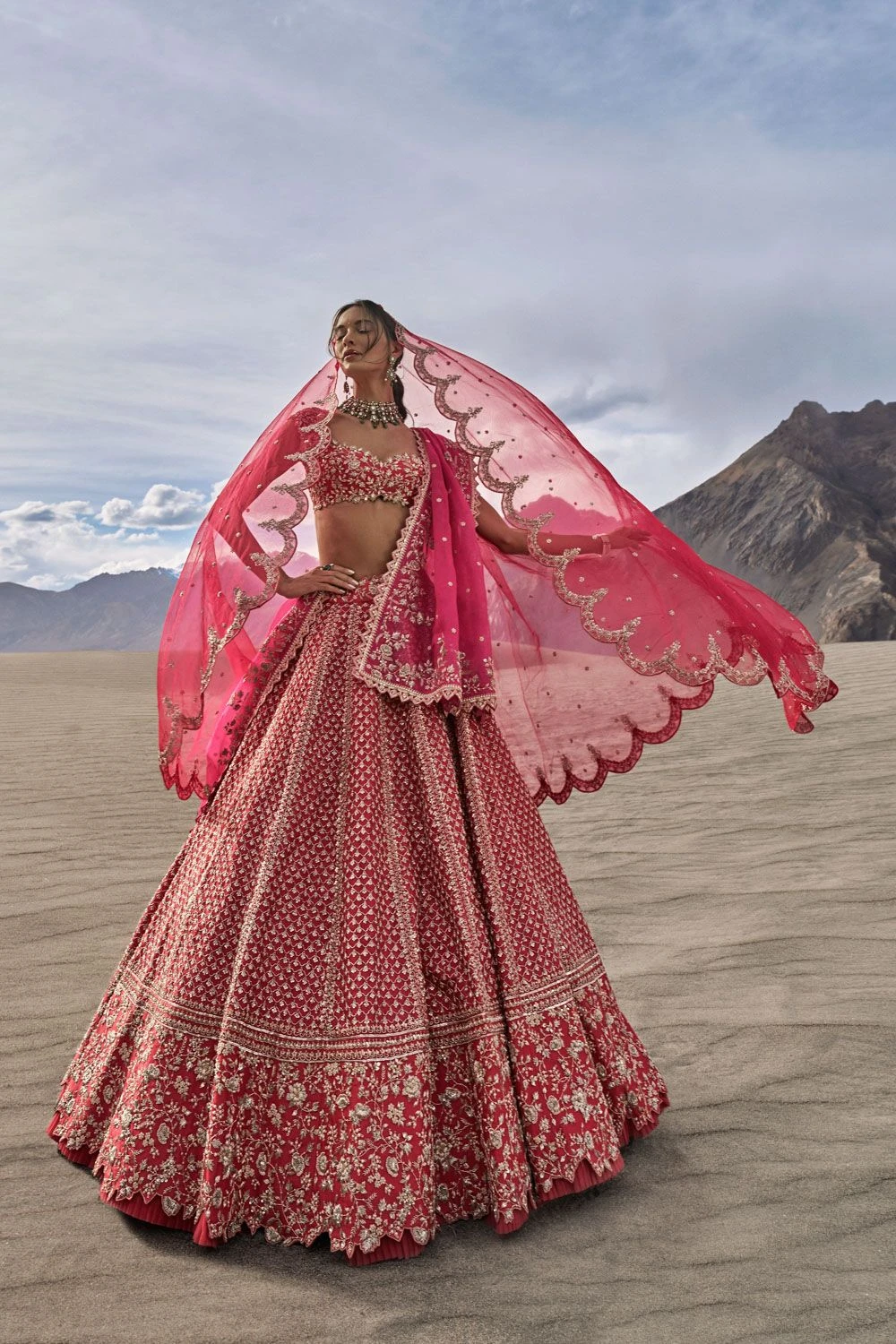 Elevate your elegance with this regally embellished lehenga. A masterpiece of opulence and sophistication, it defines grandeur. Perfect for making a refined statement at the grandest of events.