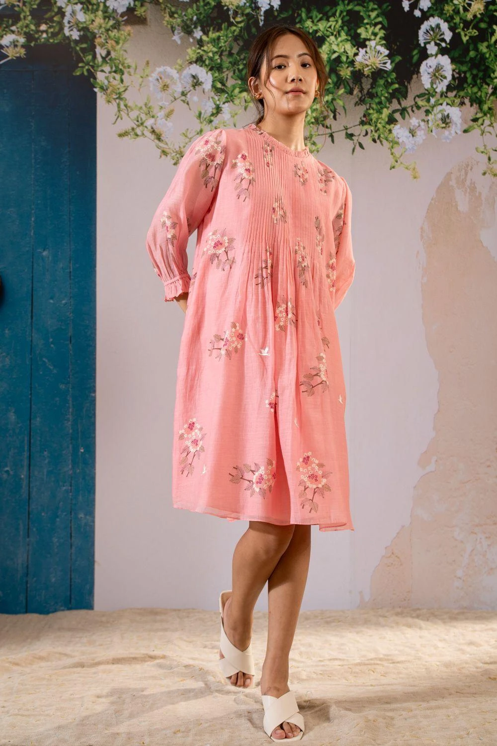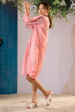 Elevate your elegance with this Dahlia Print Pleated Dress, a Chanderi marvel. Melding artistic finesse and exquisite fabric, it’s a symphony of grace. Redefine your style with this embodiment of timeless sophistication.