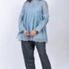 Multicolor bound pleats on this round neck ivory top is an sharp and unique design element. Wear it over denims & trousers or pair it with a skirt. This top will suit all the body types.