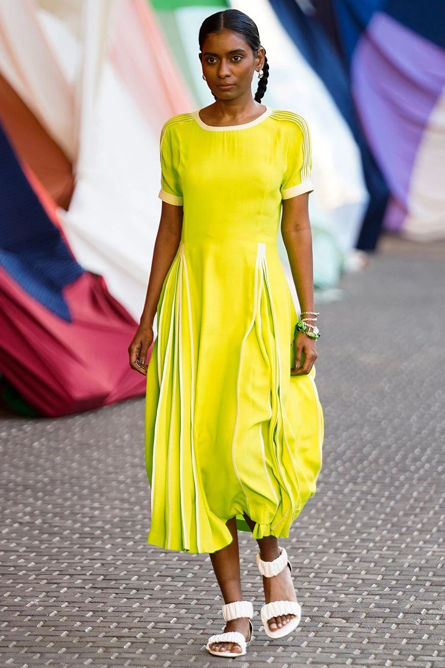 This dress is a true testament to the art of couture, crafted with utmost precision, ensuring a perfect fit. The vibrant lime hue exudes a refreshing & youthful vibe, while the binding detail creates a contrast, adding a touch of sophistication.