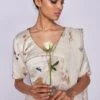 This ivory linen shirt is a wardrobe staple piece. It features two pockets and is uplifted with top stitch detailing all over. Style it with a pair of taupe pants for a modish contemporary look.