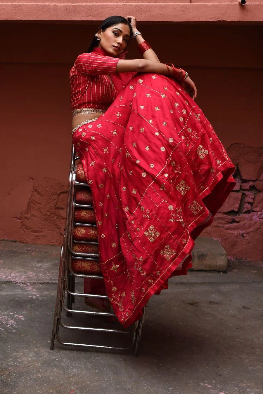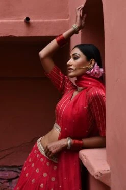 The perfect amalgamation of style & comfort, this lehenga set works across occaasions. Crafted in silk, this set features a booti embroidered lehenga paired with a zardosi embroidered blouse & a dupatta.