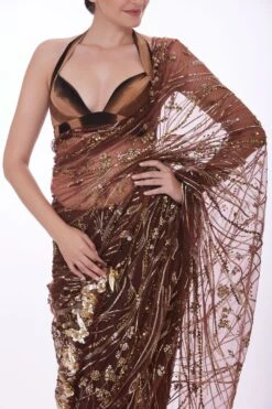 Indulge in sophistication with the brown tie & dye lycra bustier, featuring a halter neck detail. Perfect for upscale soirees, where each moment is a canvas for your distinctive style. Unleash elegance, captivate the spotlight.