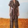 Add finesse to your everyday closet with this eclectic houndstooth print jumpsuit. It is cut in a premium linen satin with a front placket & side pockets. Style this look with a pair of chic hoops.