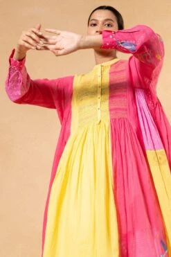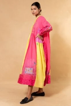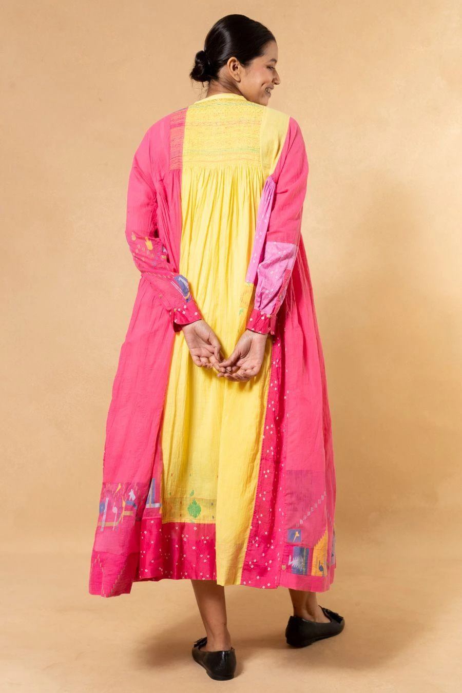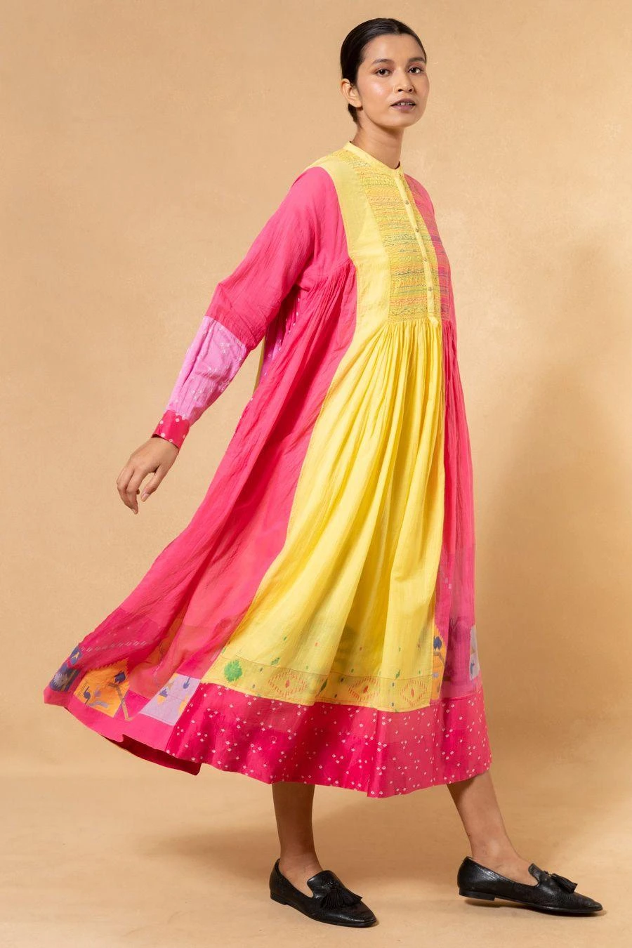 Handwoven from the finest quality cotton, this jamdani dress is a labour of love. Each motif is made using an extra weft of thicker yarn, weaved using a shuttle with the standard weft threads. The result is a floral pattern dancing across the fabric.