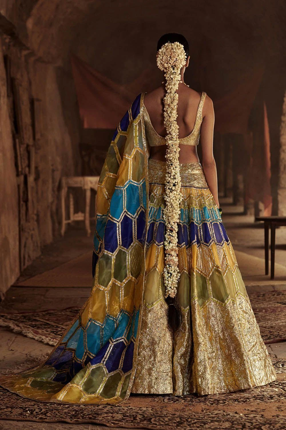 Material/Fabric : Blouse- lampi striped, lehenga & dupatta- organza