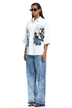 Indulge in elegance with this White Hand-Embellished Shirt. Intricate craftsmanship meets timeless style, making it a statement piece for any occasion.