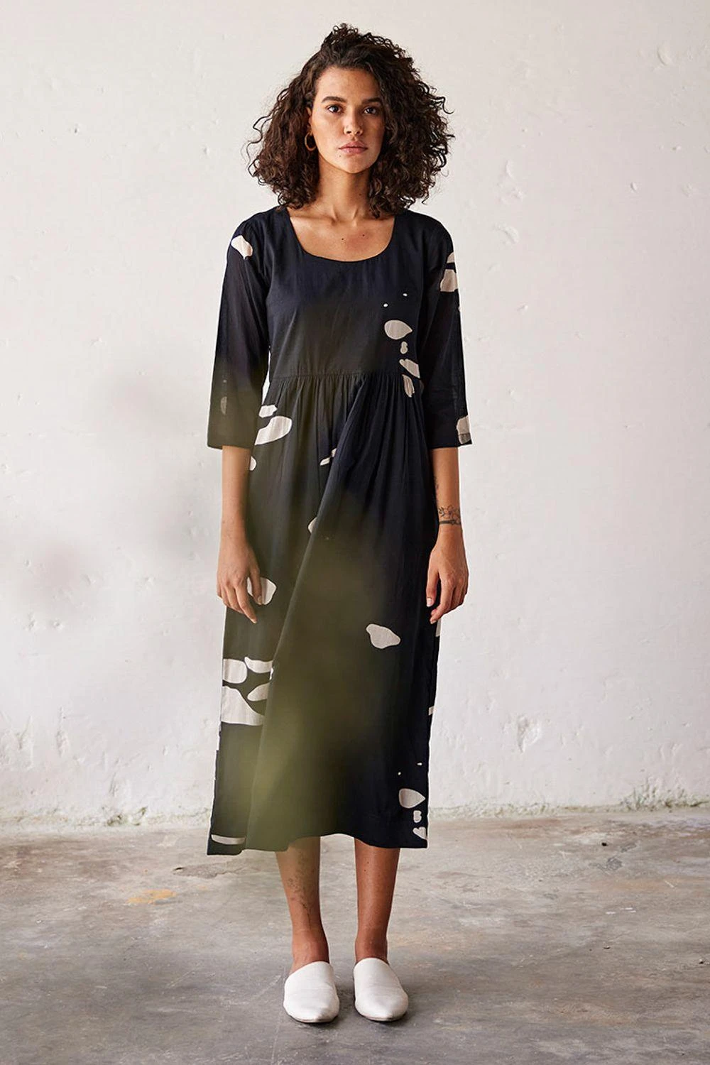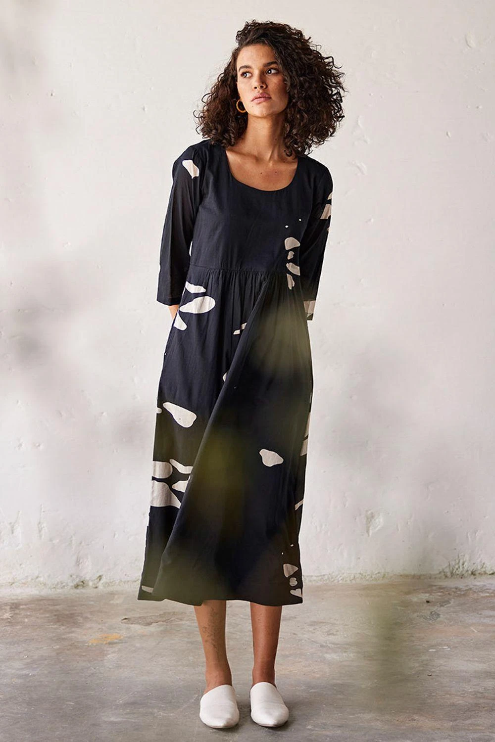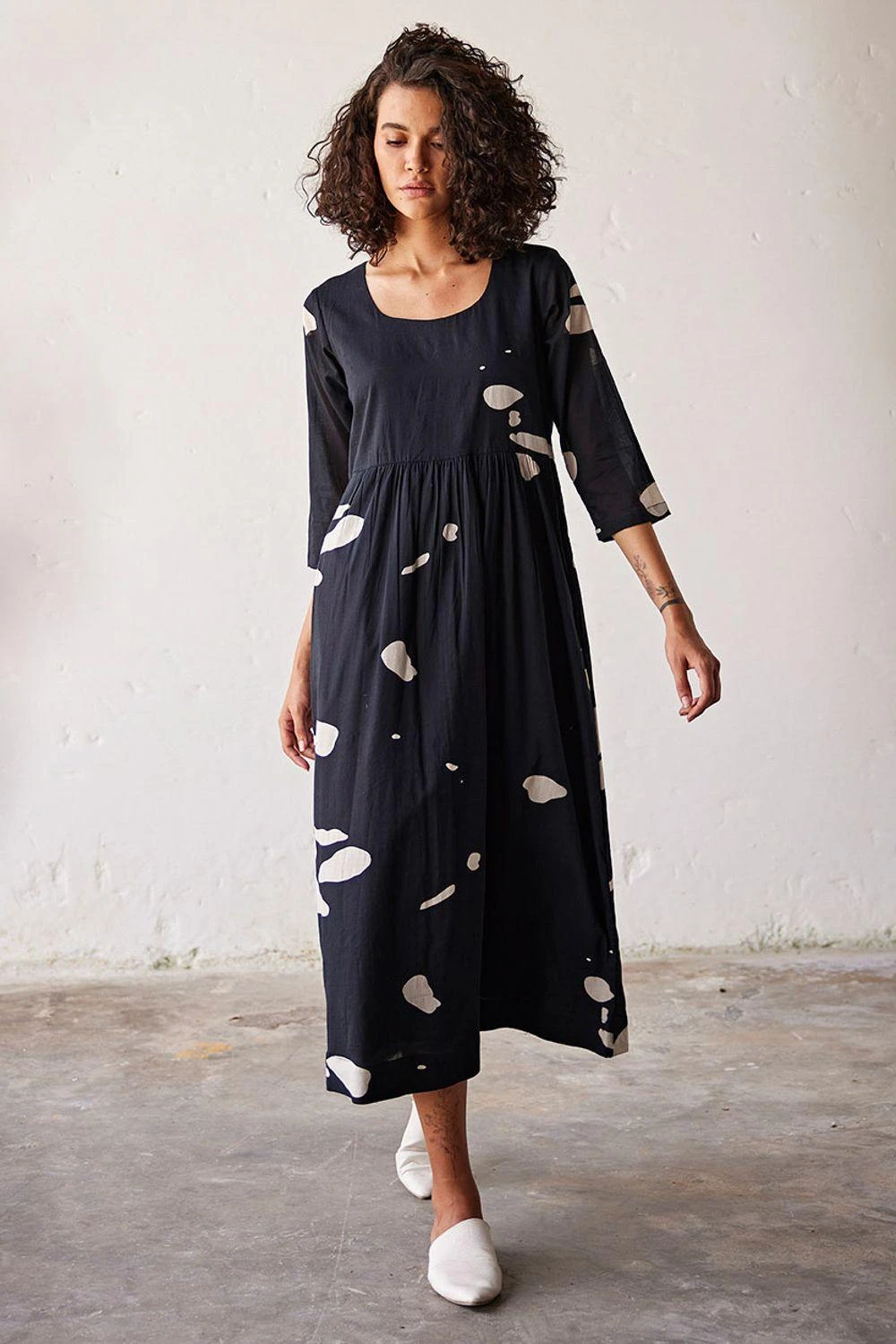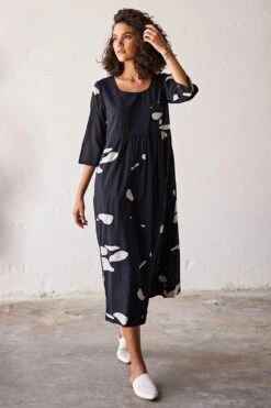 Indulge in timeless elegance with this black mul terracotta print cotton dress. Featuring flattering gathers at the waistline and a classic round neckline, it’s a symbol of effortless sophistication.