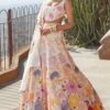 Look like a vision on your engagement day in this ethereal orange ensemble. It is cut in tulle and heavily embellished with sequin work on lehenga & dupatta and floral motifs on the blouse. Style it with a jadau necklace set to complete your look.