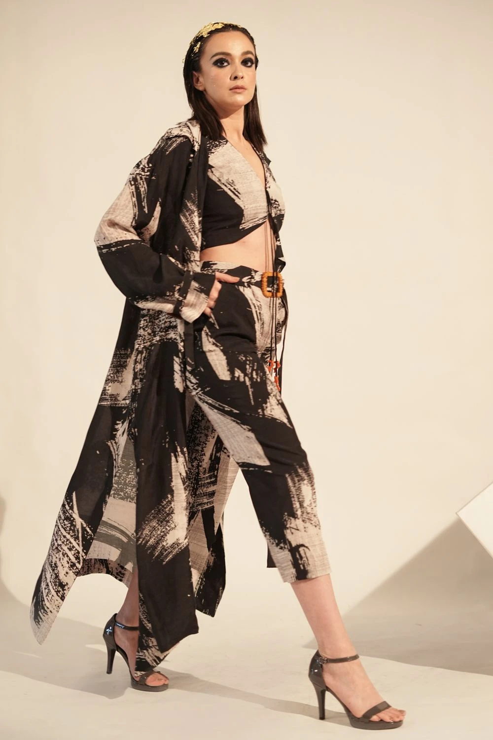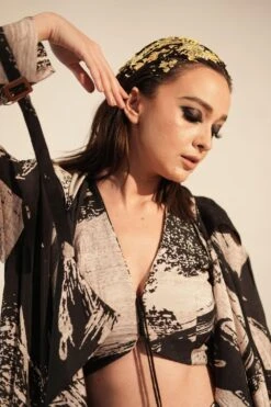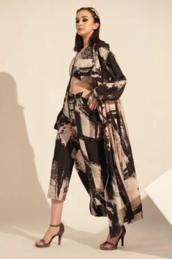 Elevate your style with this black & white stroke print top. It’s striking design and classic colour palette make it a versatile addition to your wardrobe.
