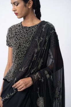 Elevate your style with this Black Silver Velvet Blouse. Its shimmering elegance adds a touch of sophistication to any outfit, making it a timeless choice for your wardrobe.