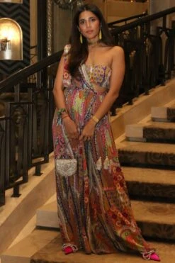 Contemporise your festive closet with this skirt set. This set comes with an African print bustier paired with a skirt & an attached drape. Style it with a pair of dangler earrings to complete the look.