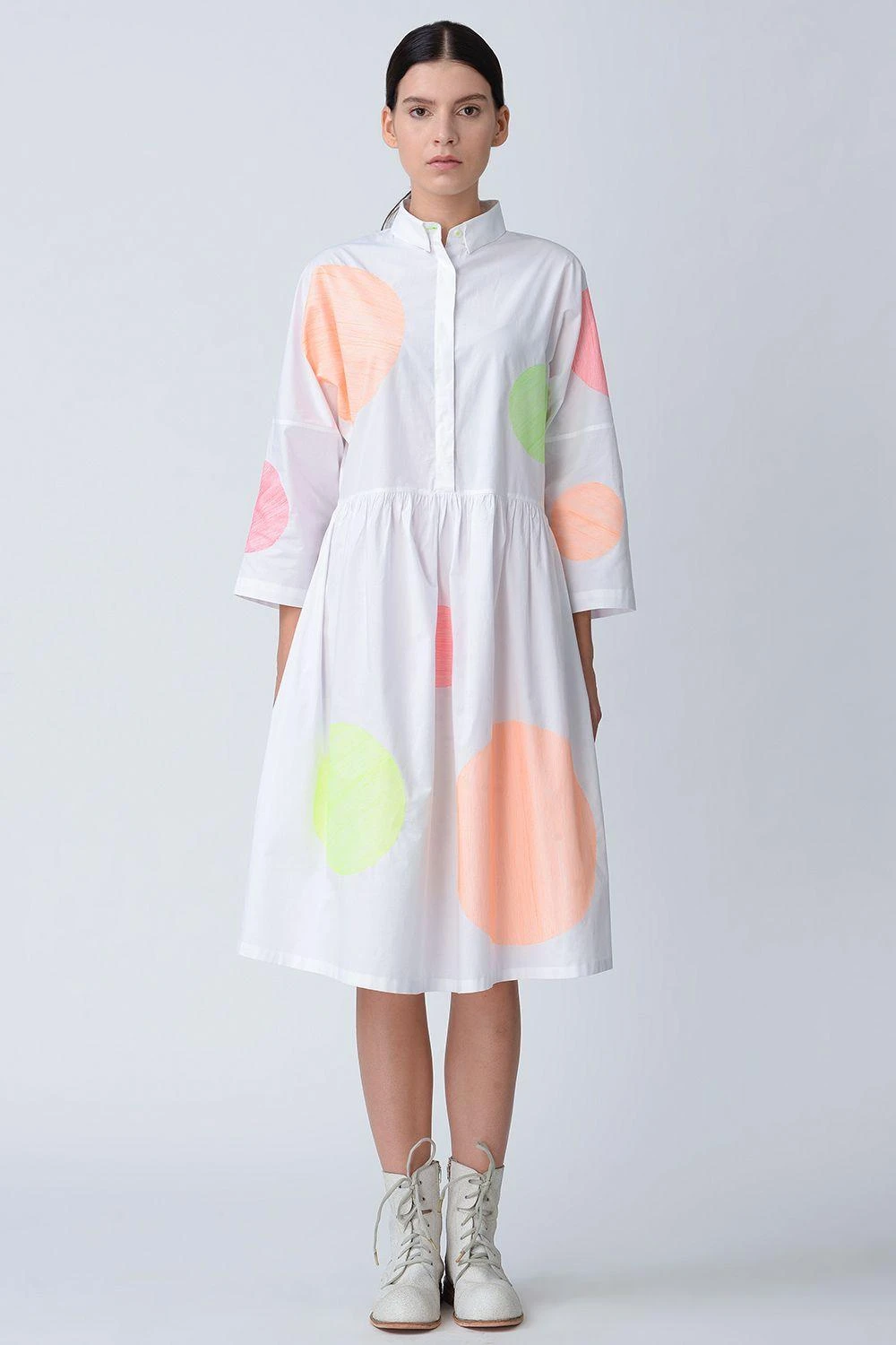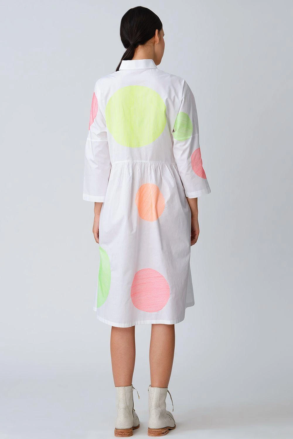 Bursts of neon embroidered polka on classic white are always so much fun. Perfect for summer lunches and brunches.