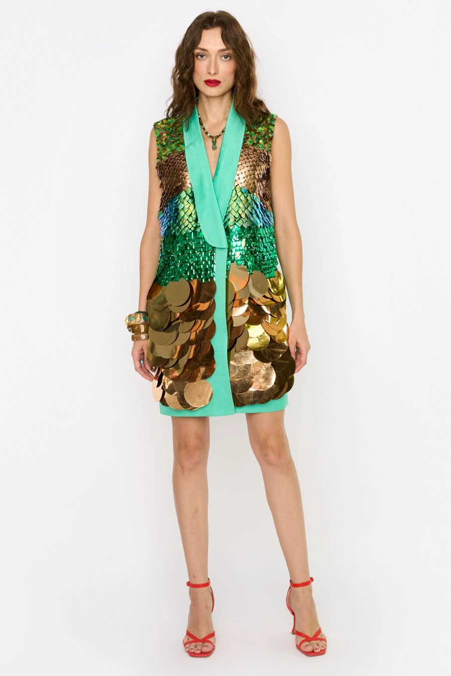 This statement dress hits all the style points for a perfect evening outfit. Crafted in linen satin, this blazer dress features hand embroidered sequinned details. Add a pair of statement earrings to complete the look.