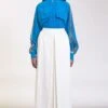 Add a layer of statement and glamour to your nautical wardrobe with this ivory shirt. Crafted in cotton, this shirt features dropped shoulders with hand embellished palm motifs.