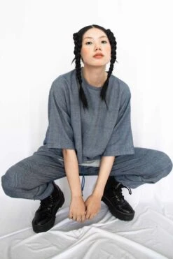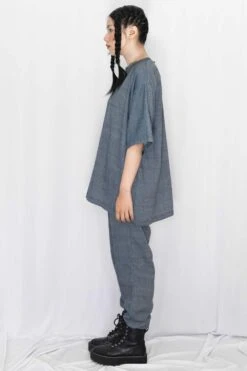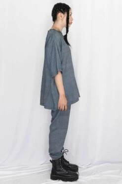 This comfy & cosy grey basic T-shirt is a winter essential piece. It is woven in indigenous handspun handwoven cotton denim fabric. It is the perfect piece that can be slipped on and styled according to your mood.