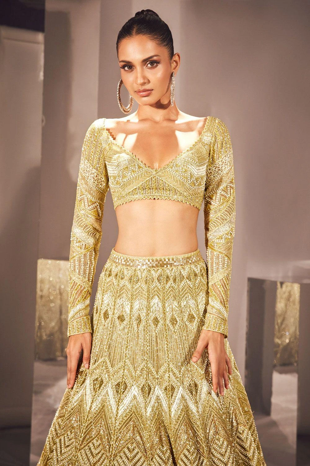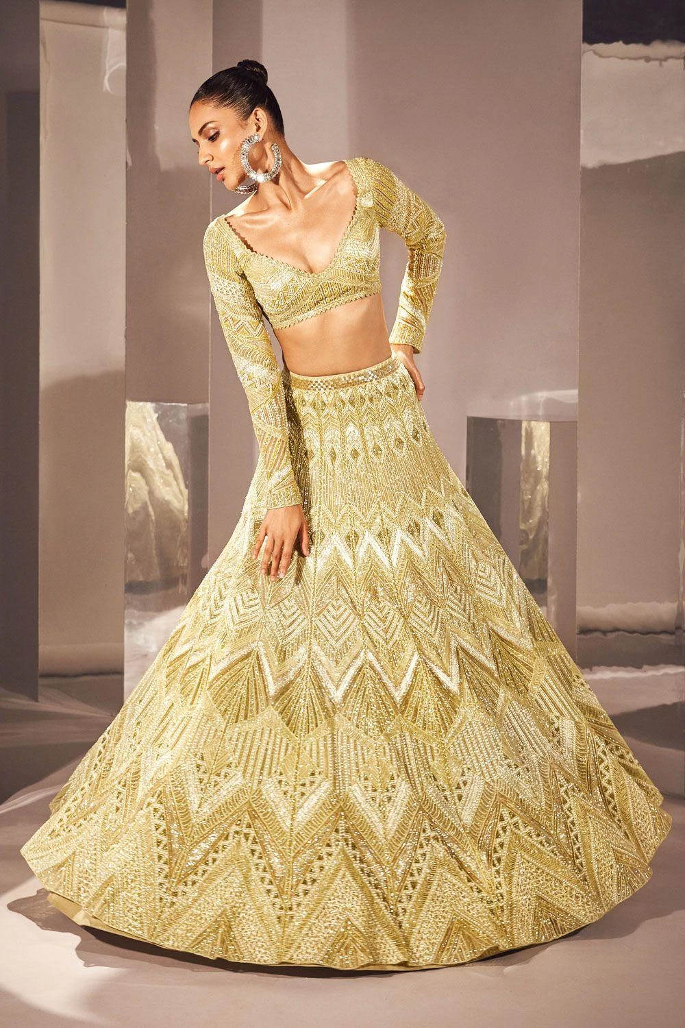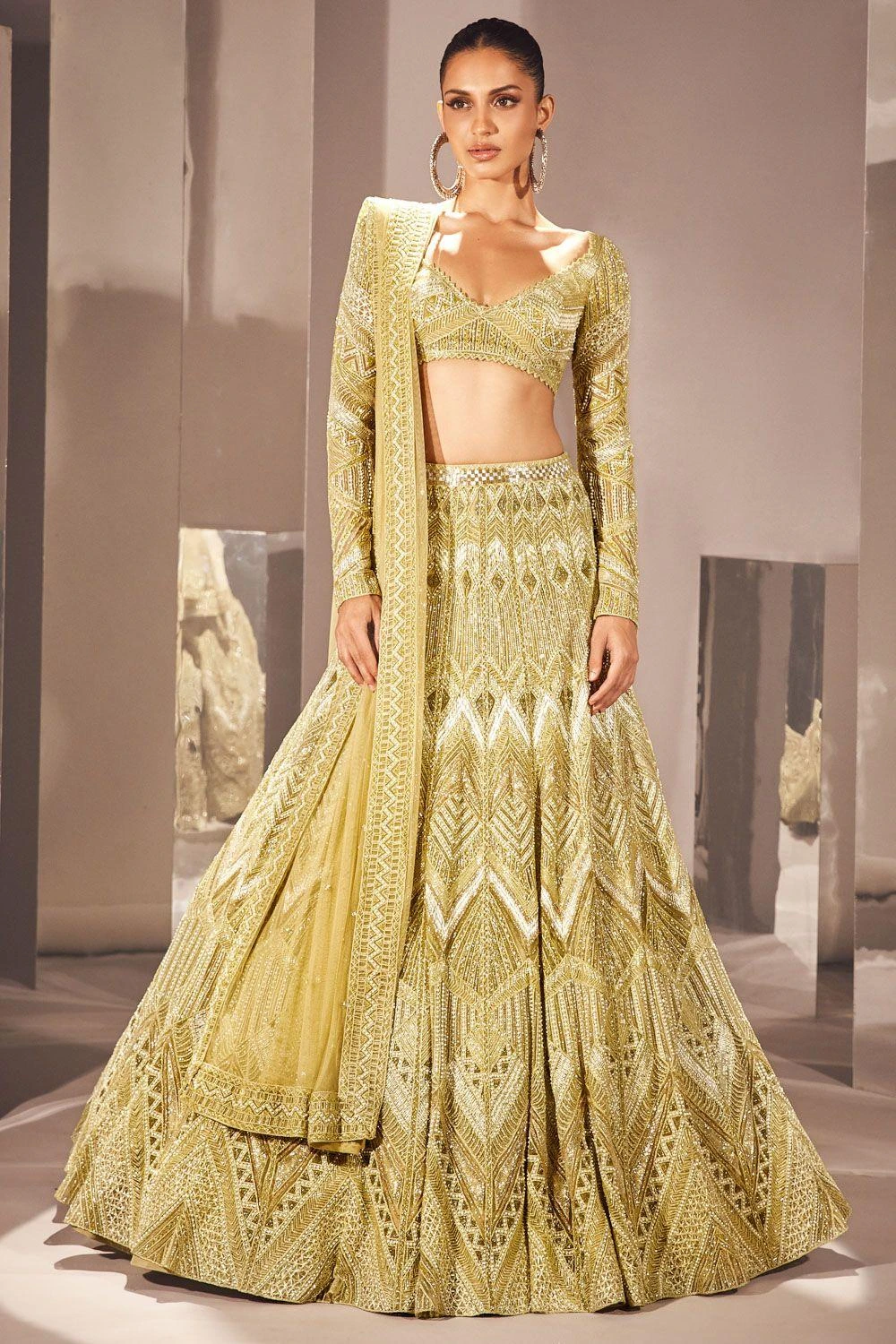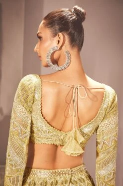 Embrace the allure of timeless elegance with this lehenga set. Crafted in net & georgette, this set features an intricately embellished lehenga with a floral blouse & dupatta. Make a captivating statement with this extraordinary set, exuding grace.