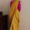 Drape in Navy Raw Silk Opulence, a hand-crafted masterpiece adorned with vibrant resham swirl daisy embroidery. Discreet fastening adds allure. Perfect for the sangeet, elevate your celebration in structured elegance.