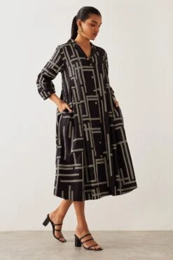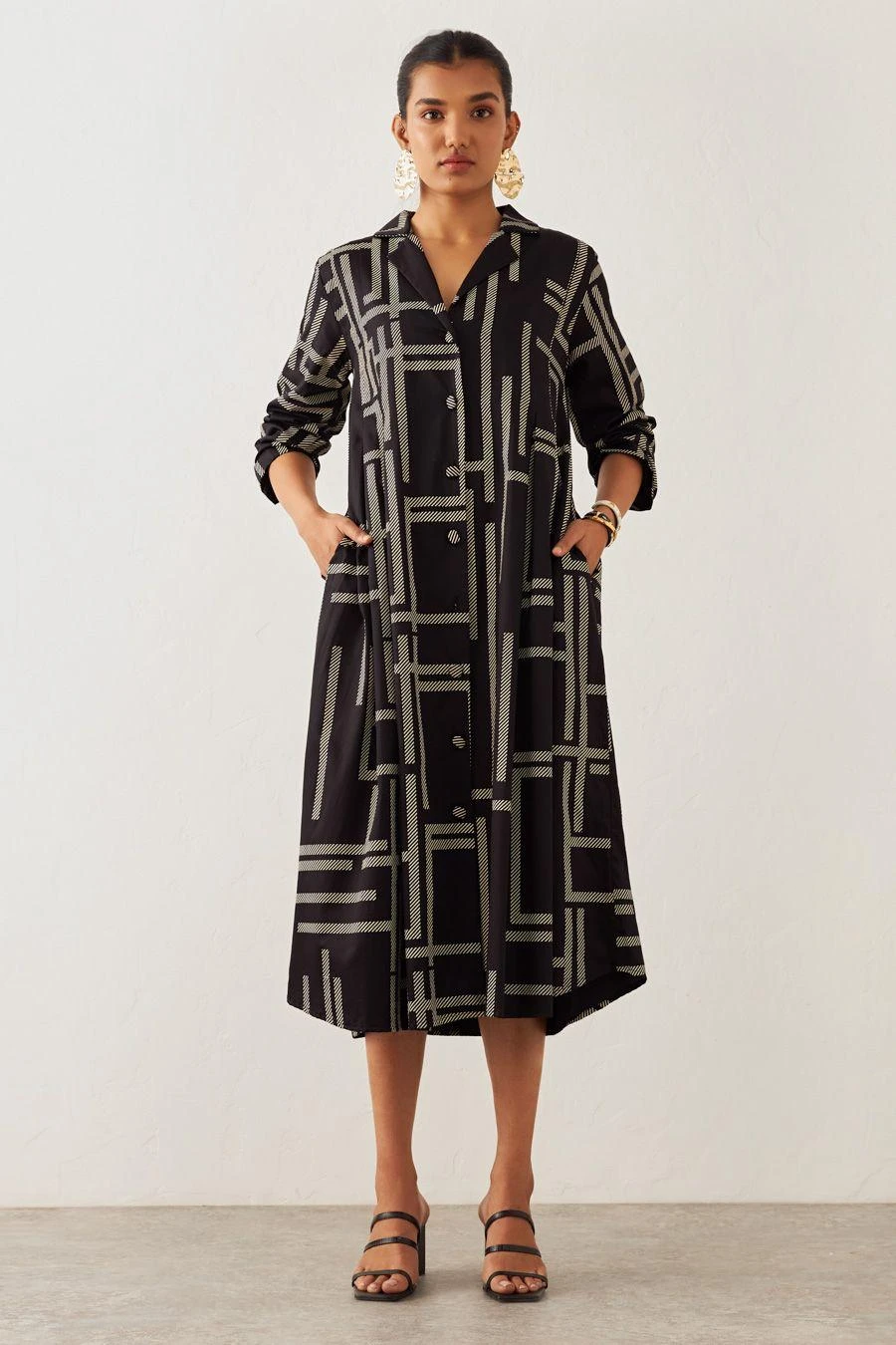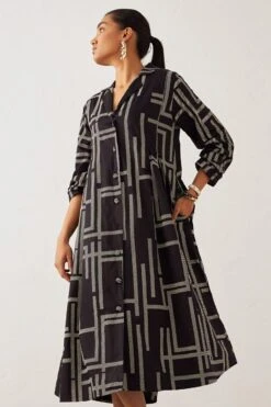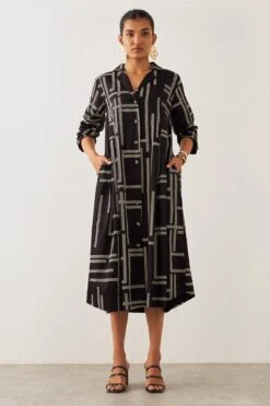 From your work desk to the brunch table & from lounging at home to catching flights, you can always count on this dress. Crafted in cotton, this collared dress features an inverted pleat detail with a flared hem.