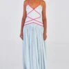 This leheriya toga style dress is consciously crafted in luxe vegan silk, making it trans-seasonal & a statement piece. It is made in a signature ombre hand dye with striking colours. This trend-setting piece can be styled in different ways.