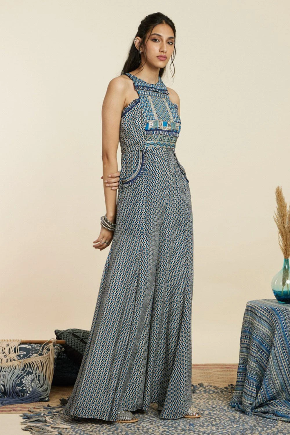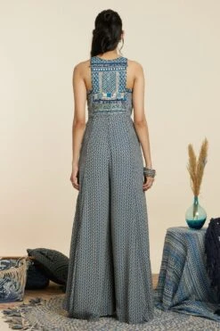 Step into opulent elegance with this abstract printed jumpsuit. Setting the stage for an amazing look, this ensemble is a nod to the seamless meticulous craftsmanship with modern refinement.
