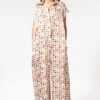 Step into the spotlight with this ivory geometric print off-shoulder jumpsuit. Its captivating design effortlessly merges fashion and artistry. The attached cape adds a touch of drama, while the off-shoulder style exudes elegance.