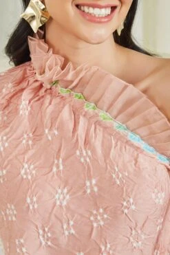 A one shoulder dress can simply never run out of style. This dress by Twenty Nine is crafted in shibori silk and features hand made tassels and draped details. Style this dress with a pair of statement earrings to complete the look.