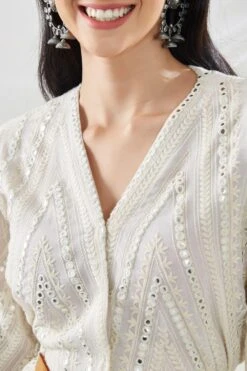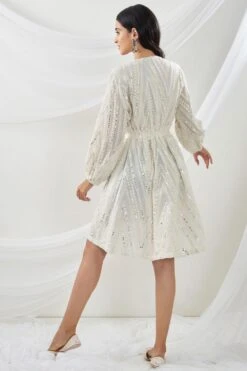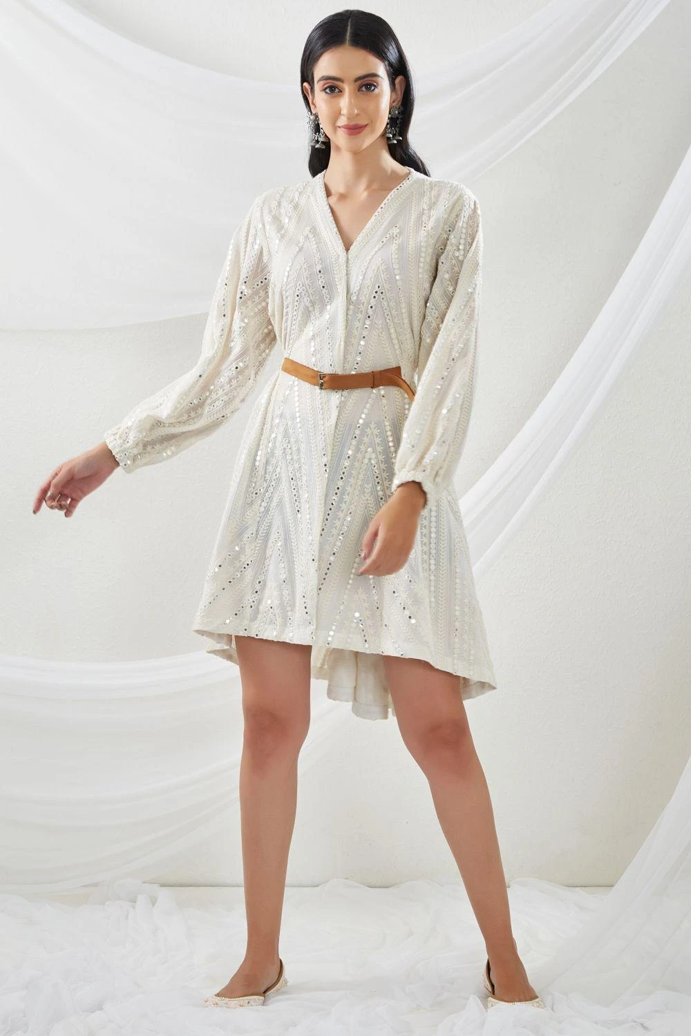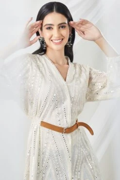 The perfect amalgamation of style & comfort, this dress is perfect for a day out. It features mirror embellishements and an asymmetric hemline. Style this dress with dainty jewellery to complete the look.