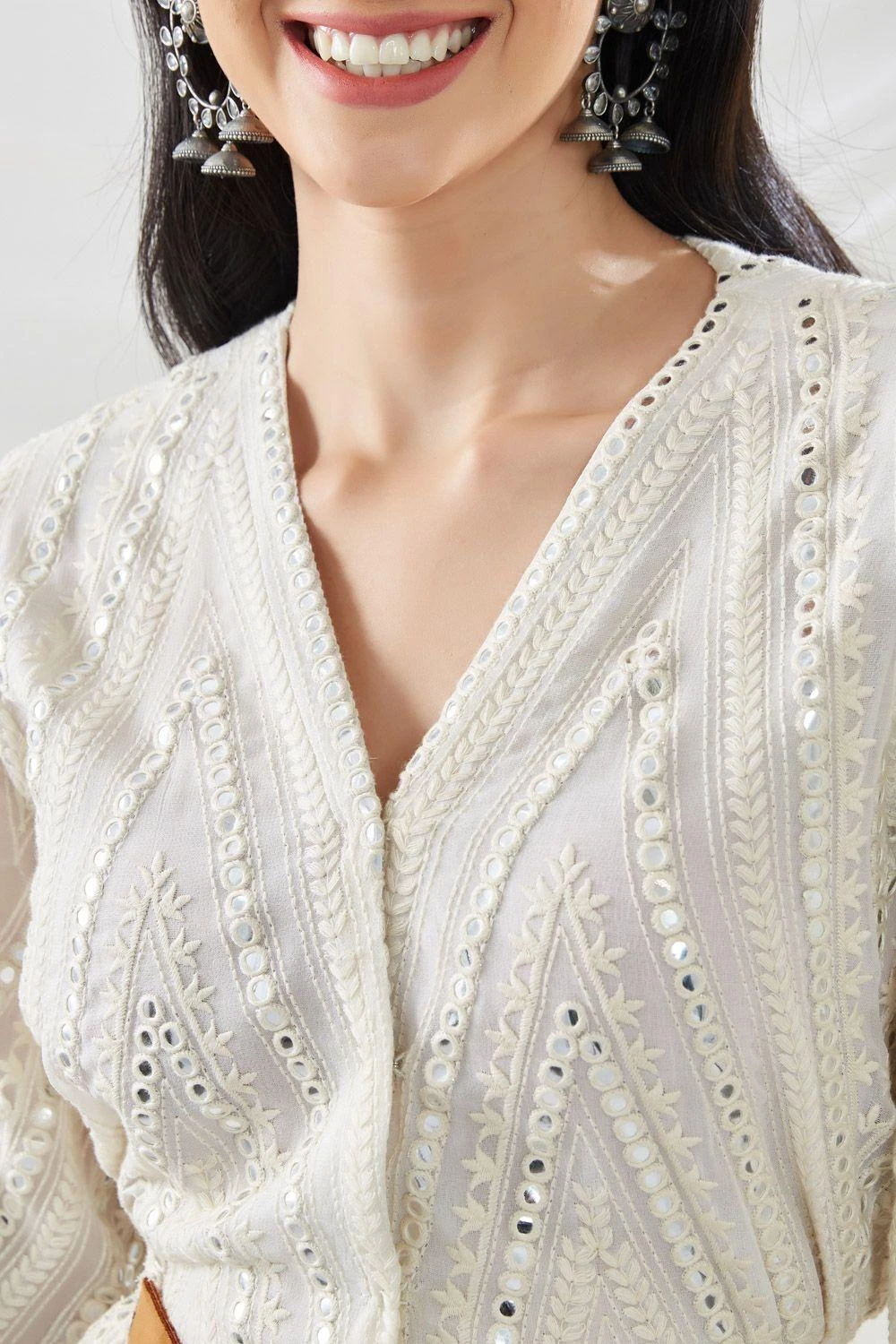 Material/Fabric : Georgette Mirrorwork Zig-Zag