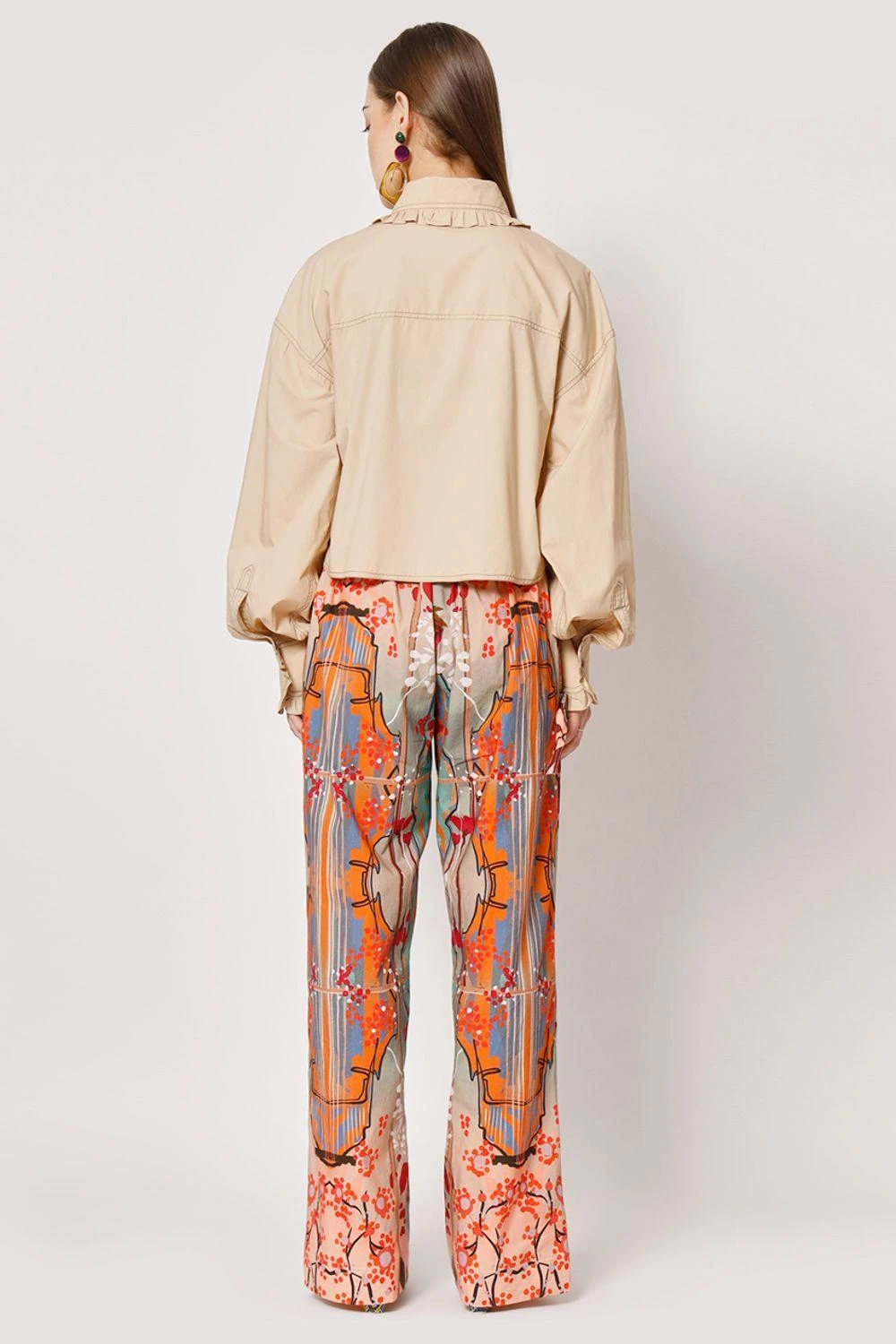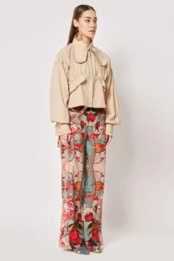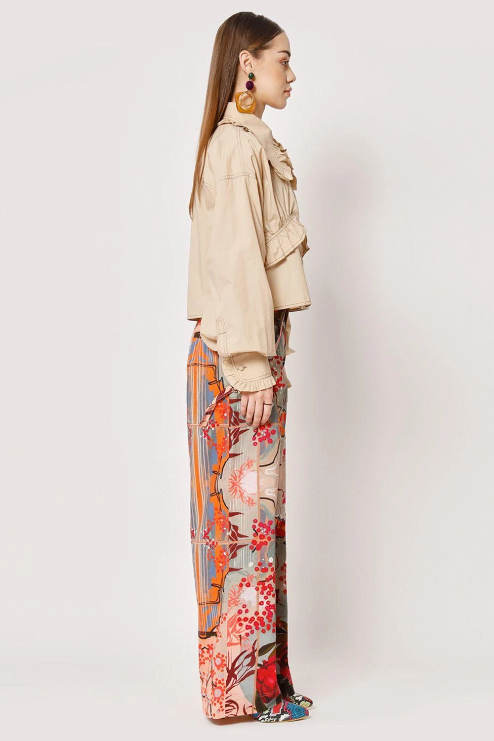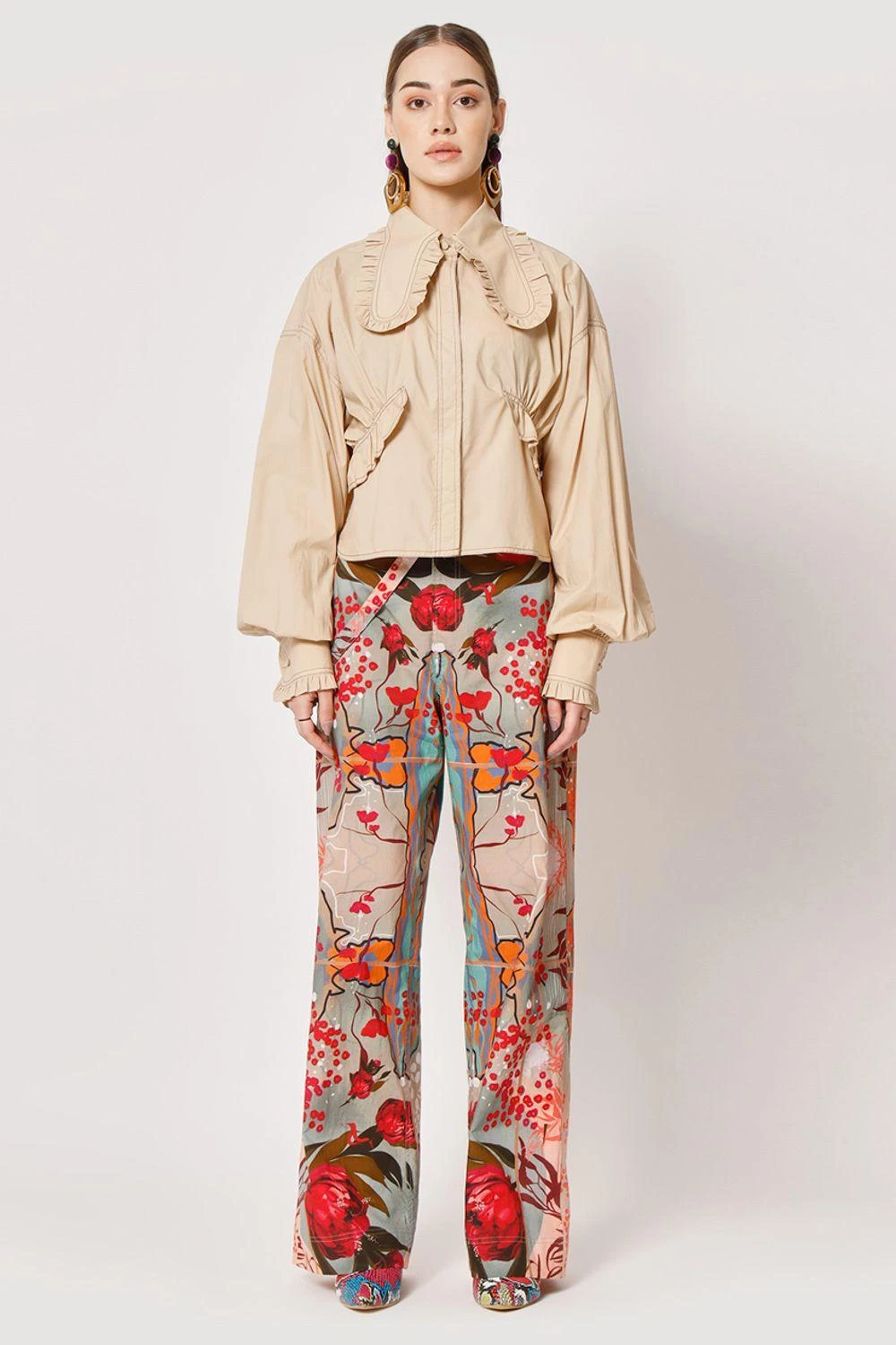 Indulge in effortless style with this relaxed easy-fit top. It features bishop sleeves and a scoop collar adorned with charming ruffle details.