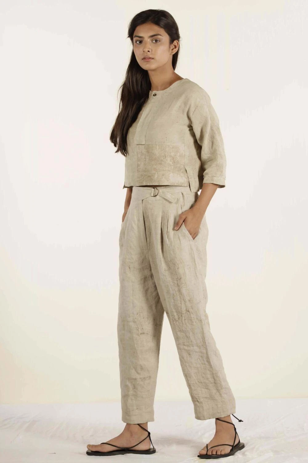 Embrace chic simplicity with this crop top. Its clean lines and contemporary design exude understated elegance. Effortlessly versatile, this top adds a touch of modern flair to any ensemble.